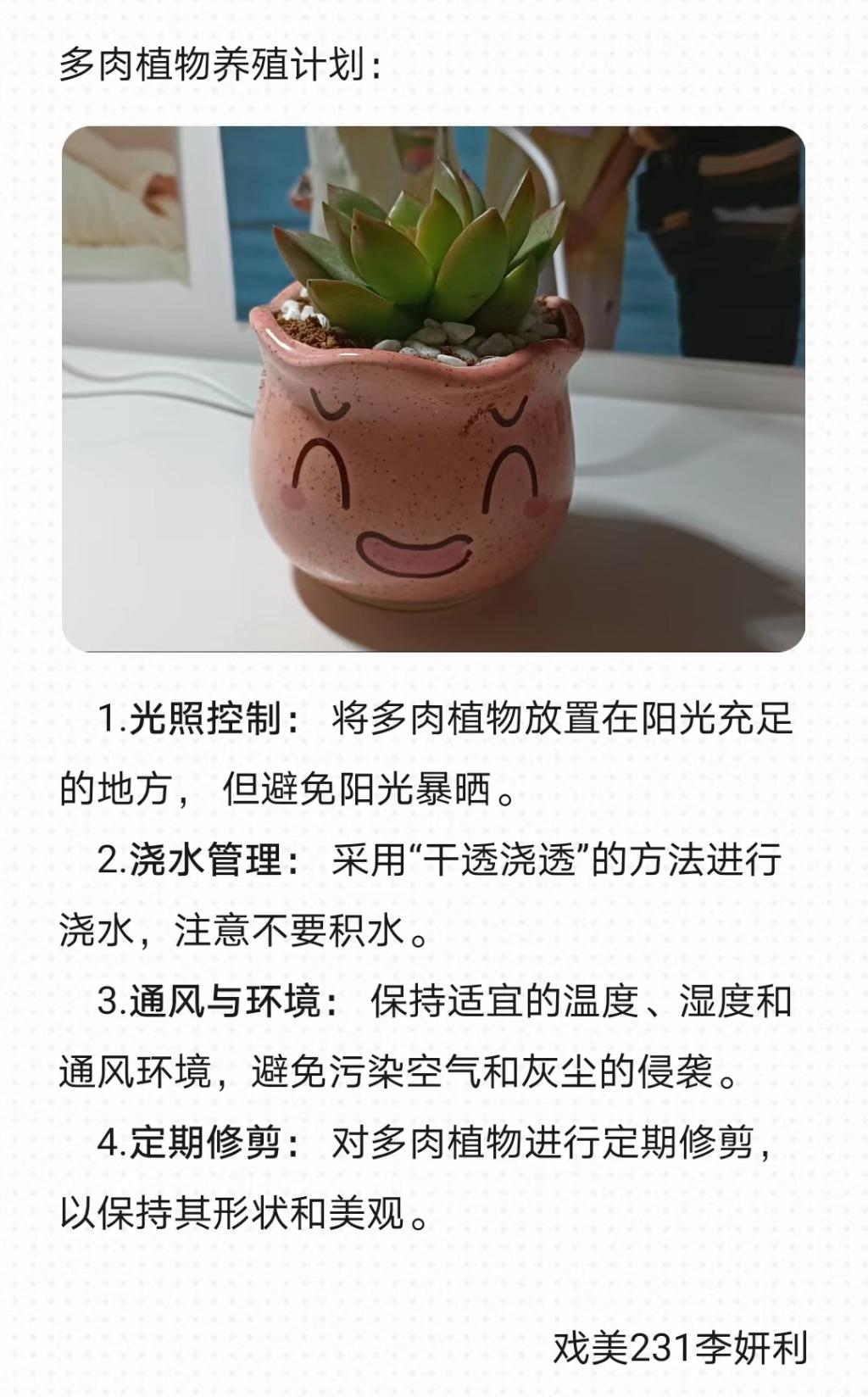 为了使员工们关注自然、感受生命力量,并提升心理调适与情绪管理能力,公司近日启动了绿植领养活动。当同学们加入“绿植领养”活动后,需要制定一份贴合植物需求的养殖计划。通过这种与自然亲近的体验有助于同学们改善心理状态,创造更加宁静、平和的心境