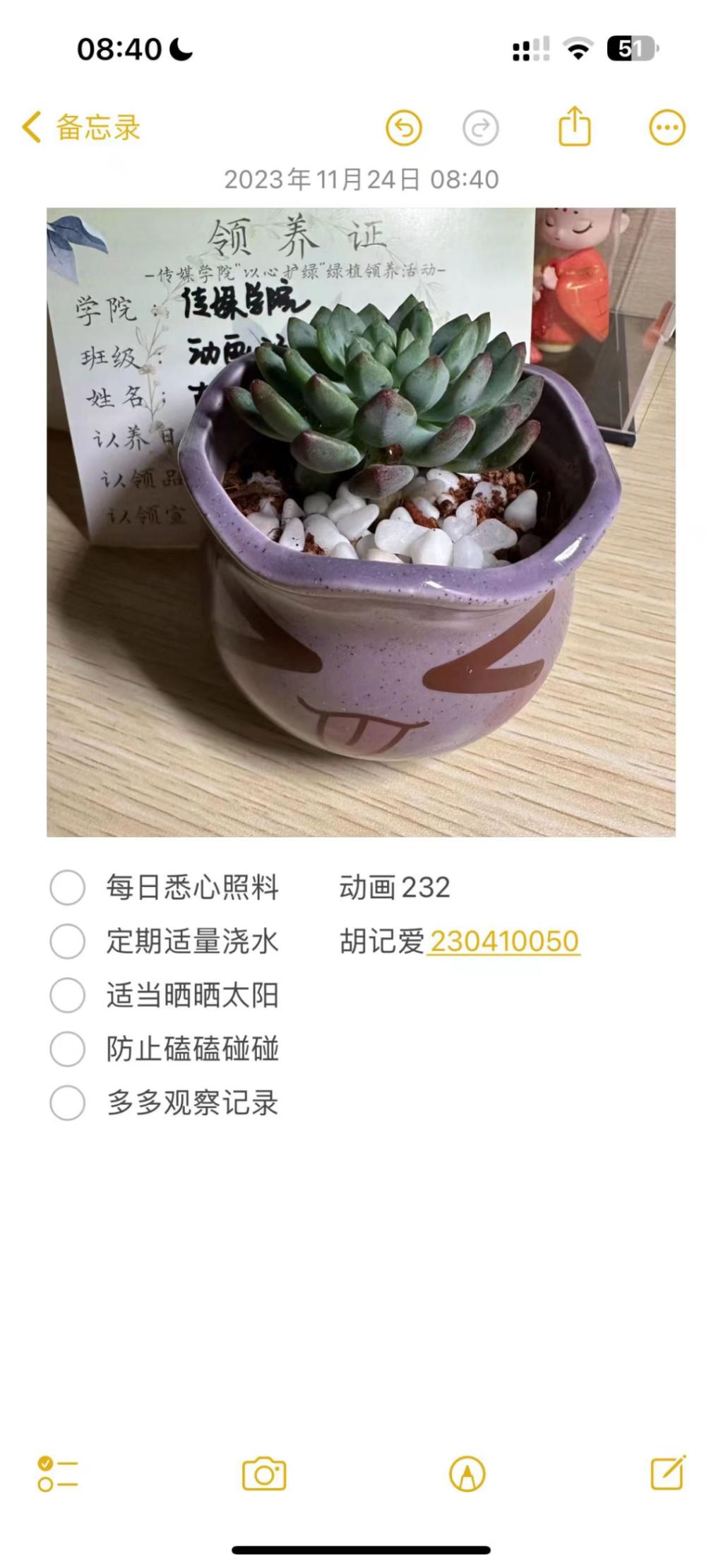 每一位领养者通过制定合理的种植计划,更好地关心和呵护属于自己的绿色小空间。共同书写与绿植的成长篇章,也为大家提供了一个积极向上的心灵角落,激发青春活力,让校园成为心灵成长的温室。