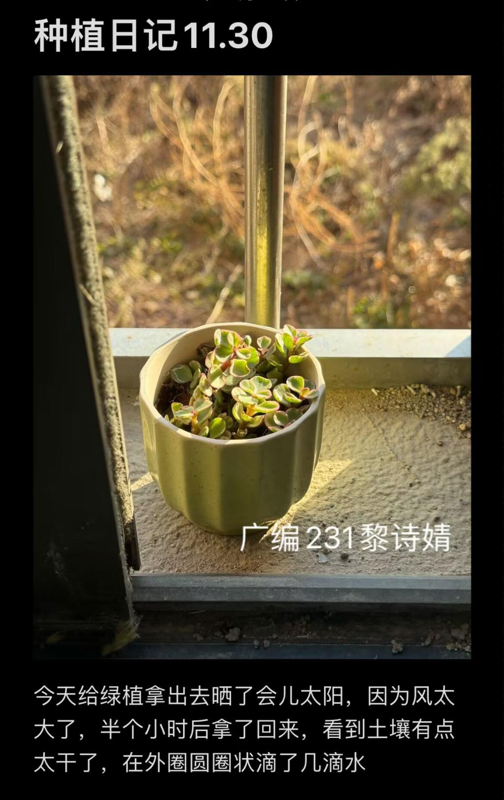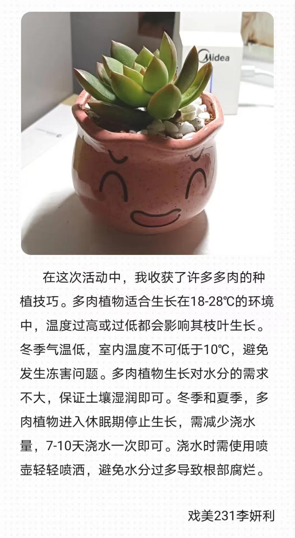 尽管也遇到了不少小问题,但同学们都积极地寻找了解决方法,用心培育这片小小的绿色天地,相信同学们会和植物们共度美好的时光,也会在种植—记录—成长的过程中不断充实自我,拥有更积极自信的心态迎接新的生活,让心灵的种子和绿植一起迎接灿烂阳光。
