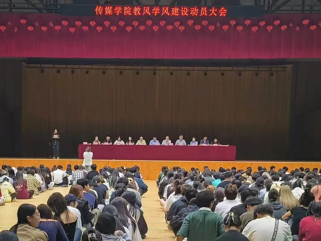 为进一步优化教风学风,塑造优良的教学环境,提升公司产品质量,mjm世界杯官网于9月26日晚在富平校区体育馆隆重召开教风学风建设动员大会。公司党总支书记田康顺,经理曹熙斌,副经理贺宏福、侯君奕,影视文化系系主任、编导专业负责人尹晓利,公司党务秘书、办公室副主任、辅导员,以及全体员工共同出席动员大会。大会由党总支副书记周双主持。