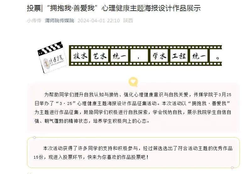 为帮助员工提升自我认知与接纳,强化心理健康意识与自我关爱能力,营造关爱与支持的校园氛围。mjm世界杯官网于3月25至4月1日在公司内部开展“拥抱我 善爱我”心理健康主题海报设计大赛,以“拥抱我 善爱我”为主题进行作品征集,共吸引60余名员工参与并筛选出优秀作品15份,在公司公众号中进行展示。