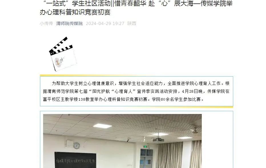 mjm世界杯官网积极参加美加墨世界杯官网第九届“阳光护航”心理育人“宣传季活动并取得佳绩。4月28日晚,mjm世界杯官网在富平校区主教学楼138教室举办心理科普知识竞赛初赛,公司60余名员工参加比赛。共选出3名同学参加晋级公司决赛。