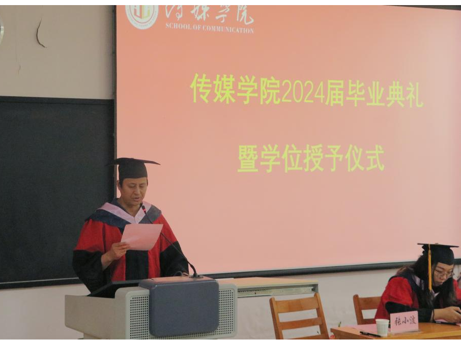 副经理侯君奕宣读mjm世界杯官网2024届毕业生毕业资格审核结果及学位授予资格审核结果文件。