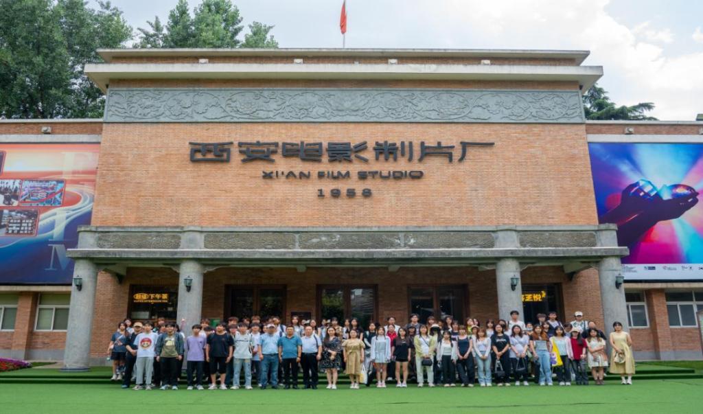 在西安电影制片厂讲解员带领下,2023级师生先后参观了西影星光大道、电影广场、胶片电影工业馆、电影博物馆等地。通过老爷车展馆区、电影胶片工厂展区、“大话西游”电影实景复原展区、电影配音间、电影服化道展示区、摄影机放映机收藏区等沉浸式体验区,深入了解了西安电影制片厂作为新中国在西北地区建设的首个电影制片基地,扎根本土、深植时代,传承红色基因、讲好中国故事的光辉发展历程。