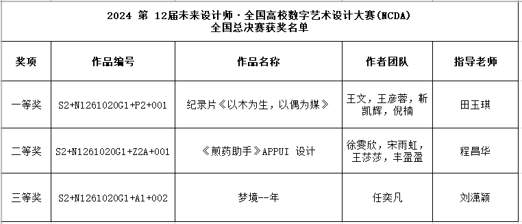 8月26日,第12届未来设计师·全国高校数字艺术设计大赛全国赛奖项揭晓。mjm世界杯官网师生获得一等奖、二等奖、三等奖各1项。该大赛是《全国普通高校学科竞赛排行榜》竞赛项目。