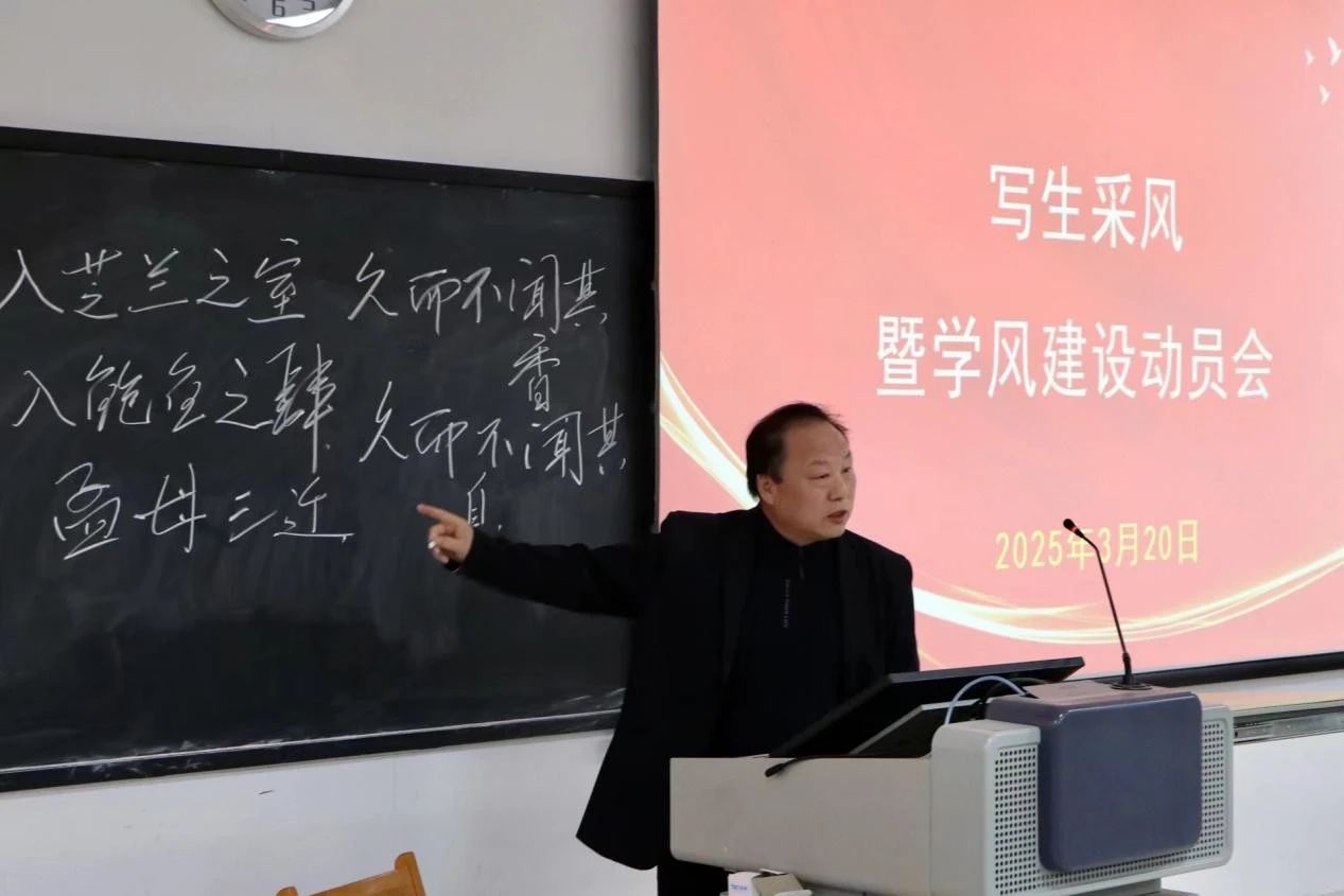 最后,田康顺进行了学风动员,他借用“入芝兰之室,久而不闻其香;入鲍鱼之肆,久而不闻其臭”,强调了优良学风的重要性。要求同学们应树立远大目标,明确个人方向,进行学业规划;端正学习态度,珍惜每一堂课,共同营造良好学习环境;培养自主学习能力,主动学习,积极探索,养成良好的学习习惯。希望同学们共同为建设良好学风而努力。