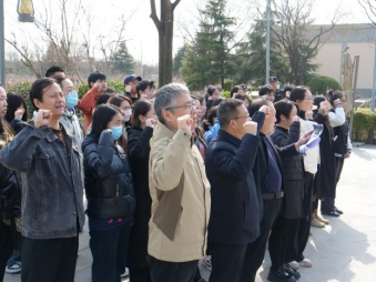 在习仲勋雕像前,全体党员在党旗下,举起右拳,重温入党誓词。铿锵的誓言,表达了师生党员不忘初心、牢记使命,立足岗位建新功的信心和决心。