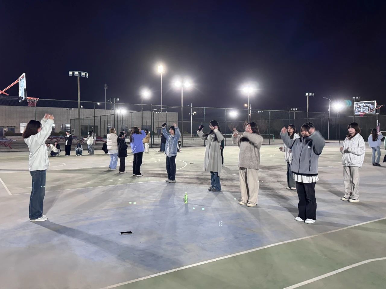 首先,自选节目在相关专业同学的带领下,啦啦操队员们随着动感十足的音乐节奏,迅速变换着各种队形。飘扬的彩带成了夜幕中操场下最亮丽的风景。据了解,为了在运动会开幕式上呈现出完美表演,参演同学们利用课余时间刻苦训练,不断磨合动作细节,力求以最佳状态迎接全校师生的目光。