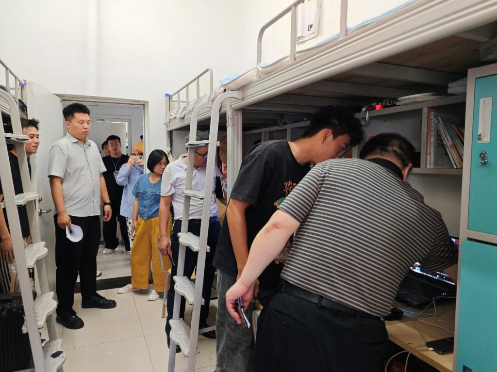 检查过程中,公司领导及辅导员们深入各个员工宿舍,重点对宿舍卫生状况、用电安全、饲养宠物等方面进行检查。发现大部分宿舍卫生状况良好,物品摆放整齐,用电安全意识较强。同时个别宿舍存在卫生清理不及时、物品堆放杂乱、违规使用小型加热电器等现象。针对这些问题,公司领导及辅导员们现场指出并督促员工立即整改,耐心向同学们讲解宿舍管理规定和安全用电知识,强调良好宿舍环境对学习和生活的重要性,引导员工增强自我管理意识和责任意识。各位领导老师同时还与员工亲切交流,详细了解记录同学们的学习生活情况、思想动态和实际需求。