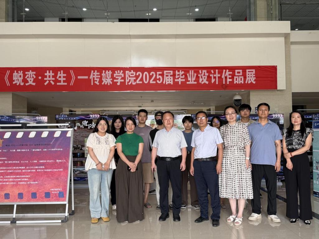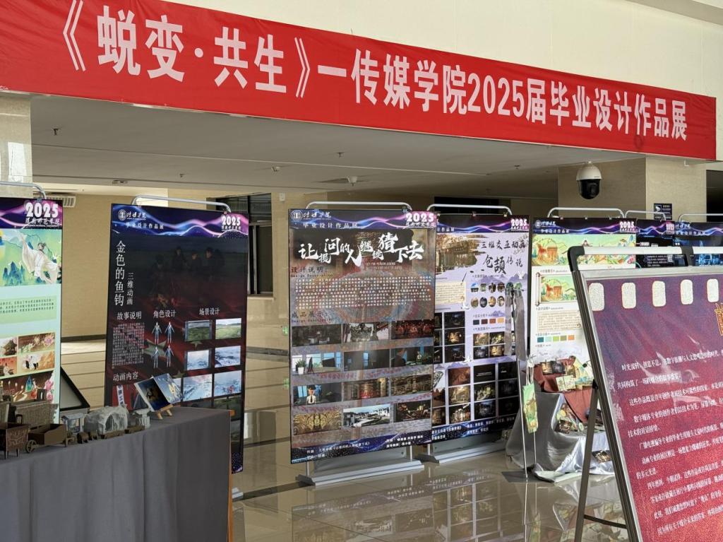 本次毕业设计展以《蜕变·共生》为主题,作品题材广泛、形式多样、视角独特,涉及海报设计、UI设计、文创周边、二维动画创作、三维动画创作、剧情片、纪录片等多种形式。指导教师代表对部分毕业设计作品进行了讲解与点评,员工代表依次参观了本次毕业设计作品展,并进行交流学习。