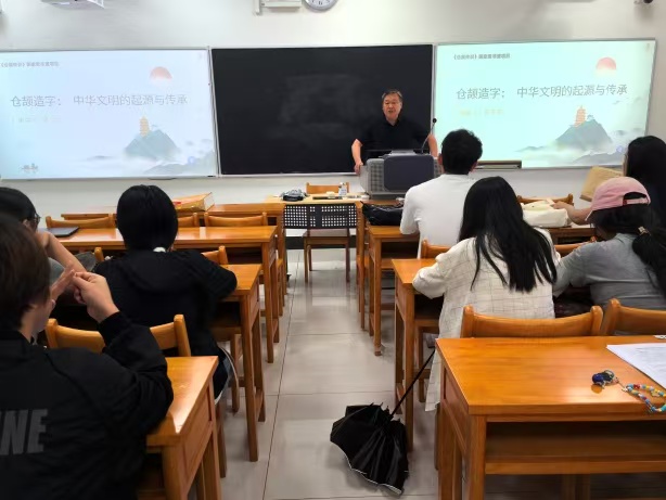 在活动中,姜建合以“五人忙”的表演形式和碗碗腔唱腔为切入点,系统讲解了皮影戏从起源到海外交流的发展历程,并现场指导员工操作皮影道具,使师生在光影交错中真切感受到非遗的独特魅力。同日进行的仓颉传说主题活动,则由韩文学现场解析象形文字从甲骨文到现代汉字的演变过程,剖析文字起源对中华文明的深远意义,揭示非遗保护背后的文化传承使命。交流互动环节,韩文学还给师生赠送了仓颉造字的相关资料10余件。