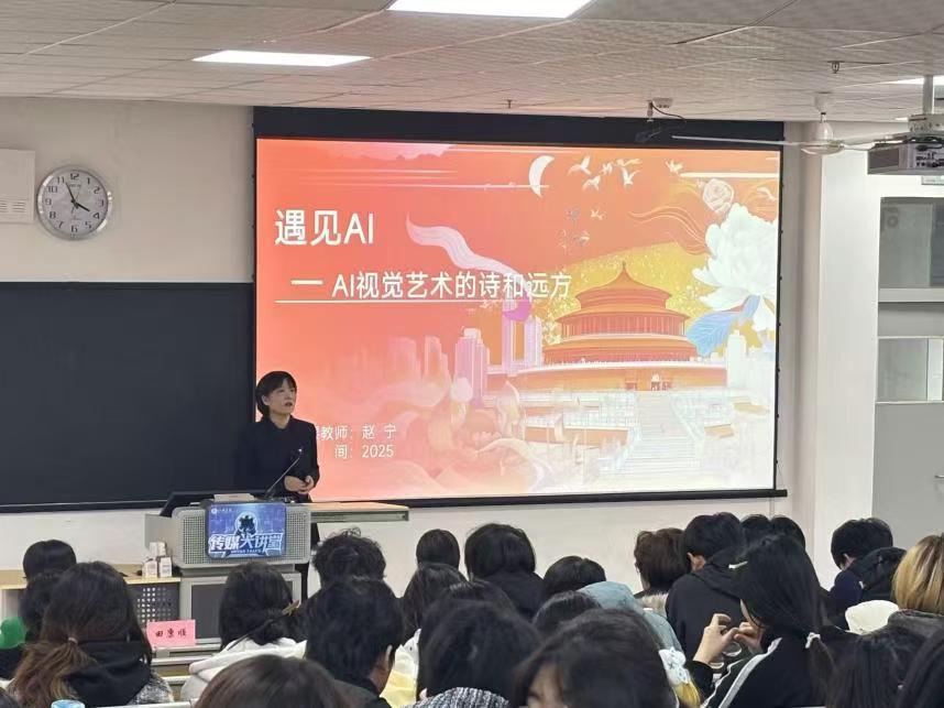 陕西直播产业研究院经理赵宁副教授以《AI视觉内容创作的诗与远方》为题,结合数字孪生、虚拟制片以及生成式人工智能等具体应用案例,介绍了AI在视觉创作中的实践成果,强调了技术与创意融合的重要性。