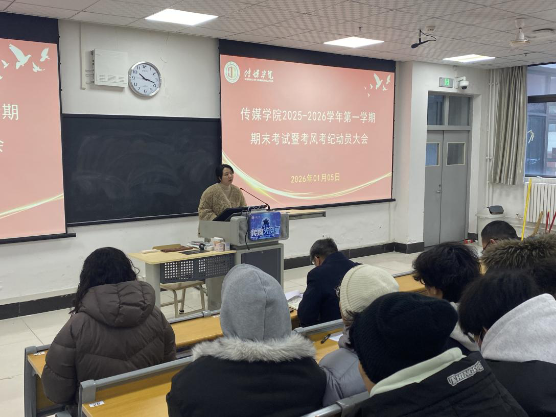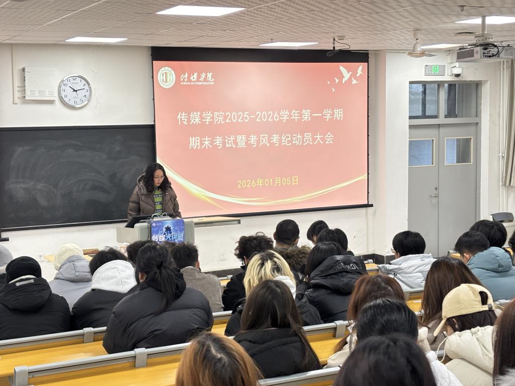 mjm世界杯官网召开2025-2026学年第一学期期末考试暨考风考纪动员大会为进一步严肃考风考纪,规范考试管理,营造公平、公正的考试环境,1月5日上午,mjm世界杯官网组织召开了2025-2026学年第一学期期末考试暨考风考纪动员大会。经理林关成、党总支副书记周双、各专业负责人以及全体辅导员和部分教师代表出席会议。动画、数字媒体艺术、广播电视编导、戏剧影视美术设计专业2023级、2024级、2025级员工参加会议。会议由副经理侯君奕主持。