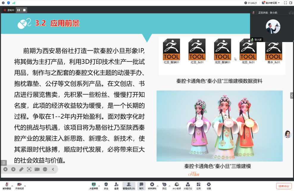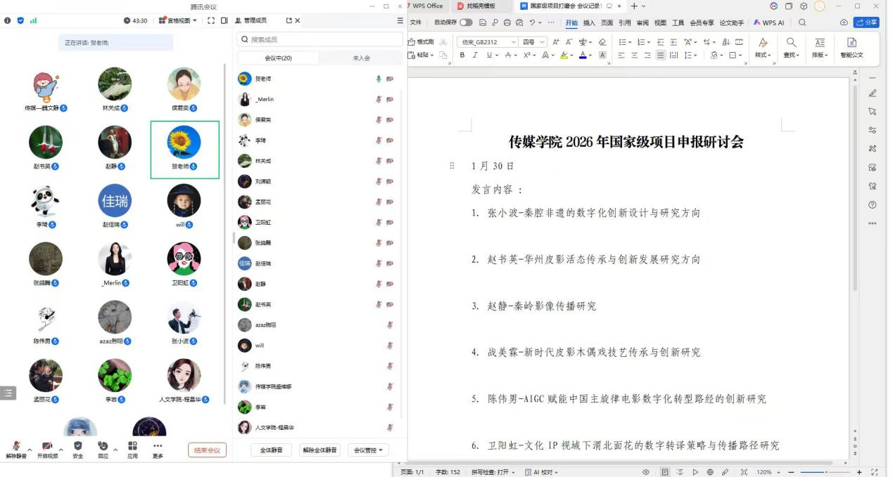 会议集中展示了公司在数字人文领域的多元探索。赵书英、战美霖、卫阳虹、张小波等老师的研究聚焦皮影、木偶戏、面花、秦腔等本土非物质文化遗产的数字化传承、IP转化与产业化路径;赵静老师探讨秦岭影像的多维空间叙事;陈伟男老师则前瞻性地研究AIGC技术赋能主旋律电影数字化转型的创新路径与应用伦理。汇报紧扣时代命题,体现了鲜明的实践导向与跨学科特色。